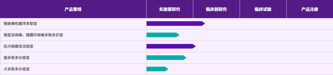 根據市場需求,我們研發了5款疫苗產品,涵蓋經濟動物和伴侶動物。
