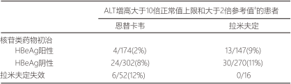 表4∶在Al463022、Al463027和Al463026研究中,核苷類(lèi)藥物初治患者在停藥后隨訪(fǎng)期發(fā)生的肝炎惡化